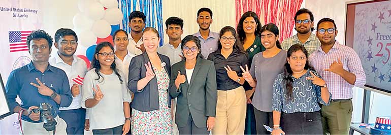 US Embassy in Sri Lanka Public Affairs Officer Menaka Nayyar and Regional Public Engagement Specialist Miquela Burke alongside US Embassy Sri Lanka’s Youth Forum Alumni