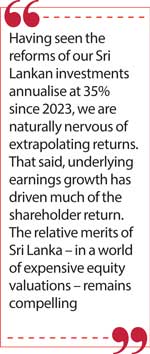 Having seen the reforms of our Sri Lankan investments annualise at 35% since 2023, we are naturally nervous of extrapolating returns.