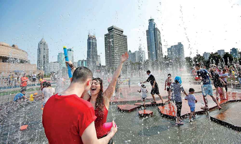 Chinese celebrate near People Square in Shanghai. China met the poverty reduction target of the United Nations 2030 Agenda for Sustainable Development 10 years ahead of schedule, boosting confidence for and laying the foundation of global poverty reduction