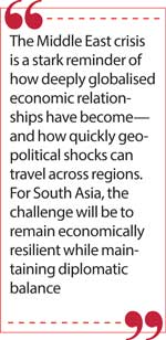 As former US Secretary of State Henry Kissinger once observed, “The Middle East remains the world’s most important geopolitical fault line because it sits at the heart of global energy flows.” The escalating turbulence across the region is a stark reminder of how quickly local conflicts can send shockwaves across the globe. Nowhere is this more evident than in South Asia—a region deeply intertwined with the Middle East through labour migration, remittances, energy dependence, tourism, and financial linkages. For decades, South Asian economies have been closely integrated with the Gulf and the broader Middle Eastern economic ecosystem. As tensions mount, governments across South Asia must reassess their economic and strategic exposure and carefully consider how best to navigate the emerging challenges that can last for a long time.