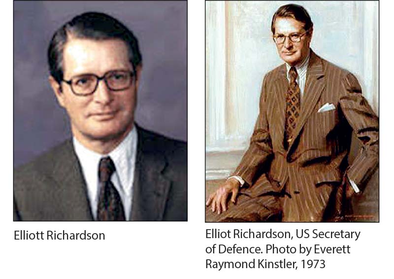 Richardson combined intellect, integrity and idealism in a way rarely seen today. He held nearly every major Cabinet position — Attorney General, Secretary of Defence, Secretary of Commerce, and Secretary of Health, Education and Welfare — and still holds the distinction of having served in more United States Cabinet positions than any other individual in American history. Yet despite this remarkable record of public service, he never compromised on principle.