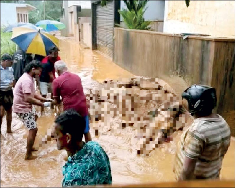 An image of deceased victims in Gampola that users mistook for AI-generated content. Faces and bodies blurred