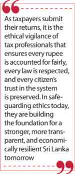 As taxpayers submit their returns, it is the ethical vigilance of tax professionals that ensures every rupee is accounted for fairly, every law is respected, and every citizen’s trust in the system is preserved. In safeguarding ethics today, they are building the foundation for a stronger, more transparent, and economically resilient Sri Lanka tomorrow.
