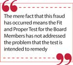 This large scale financial fraud has resulted in perhaps an entire years profit being wiped off. The mere fact that this fraud has occurred means the Fit and Proper Test for the Board Members has not addressed the problem that the test is intended to remedy. The Fit and Proper Test is a test which determines the suitability of a person to serve as a Board Member of a Financial Institution and indeed of any public listed entity. Competence is a key factor which is considered in the application of the Fit and Proper Test. The other factors are honesty and financial soundness. In fairness to the Central bank of Sri Lanka (CBSL) at the time of the appointment of each of the Board Members there is no way that the occurrence of such a financial fraud could have been foreseen by them. Commercial Banks are licenced by CBSL and so they fall within the regulatory ambit of the CBSL. Has there been a supervisory lapse on the part of the CBSL for this fraud to have gone undetected?