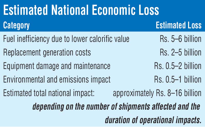 The cost of substandard coal is not limited to the price paid for a shipment. It cascades through the entire electricity system—reducing plant efficiency, forcing reliance on more expensive alternative generation, accelerating equipment wear and increasing emissions of sulphur dioxide, nitrogen oxides and particulate matter. When these combined effects are considered, the national economic impact could plausibly range between Rs. 8 billion and Rs. 16 billion.