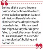 Behind all this drama lies one basic and incontrovertible truth: the so-called peace plan is a tacit admission of Israel’s failure to eliminate Hamas despite Israel’s overwhelming military arsenal and might. Netanyahu’s regime failed to break the determination of Palestinians not to surrender to the coloniser’s bullying and barbarism. Even after sacrificing the lives of over 70,000 men, women and children, which is obviously an undercount, and losing 190,115 buildings and 330,500 housing units according to a report published by the Palestinian Central Bureau of Statistics (PCBS), Palestinian resistance led by Hamas, with assistance from Lebanon and Yemen, has remained steadfast and has not been weakened even by an iota. It is this heroism and challenge amidst Israel’s carnage that eventually angered and awakened the rest of humanity, as is evident from worldwide pro-Palestine rallies and demonstrations. It is also this awakening that prompted Trump to come out with his deceptive peace deal.