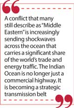 separation is becoming harder to sustain. A conflict that many still describe as “Middle Eastern” is increasingly sending shockwaves across the ocean that carries a significant share of the world’s trade and energy traffic. The Indian Ocean is no longer just a commercial highway. It is becoming a strategic transmission belt.