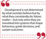 Ultimately, development is not determined by what societies believe but by what they consistently do. Values matter—but only when they are translated into systems that shape behaviour, guide decisions, and sustain outcomes.