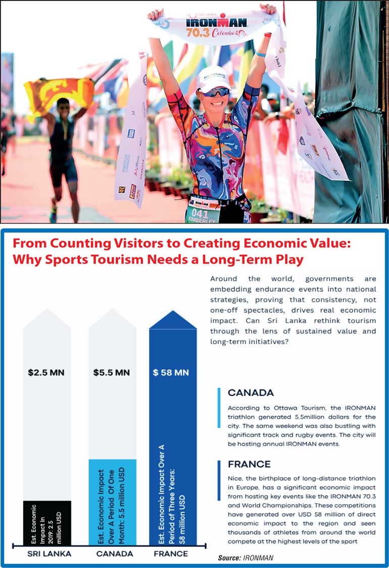 Sri Lanka’s brief but brilliant IRONMAN experience proved the concept. The next step is to scale it—with structure, consistency, and a growth-centric government policy recognising endurance events’ long-term value. As the global tourism race accelerates, Sri Lanka faces a choice: continue chasing visitor numbers, or invest in value-driven, high-yield segments like sports tourism. Just as every triathlete knows, endurance is not about speed but consistency. For Sri Lanka, it’s time to commit to the long game. Because in the global race for sports tourism, those who stay the course always win.