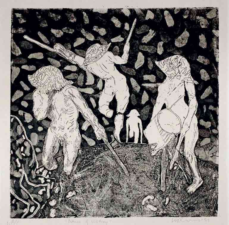 Chandraguptha Thenuwara, Dance of Victory, Etching and Aquatint on Paper, 29 x 29 cm, Artisit_s Proof