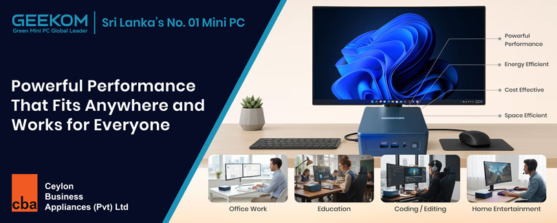 Contact Ceylon Business Appliances (Pvt) Ltd, the exclusive partner for GEEKOM Mini PCs in Sri Lanka, to learn more about the full range of models and find the perfect fit for your home, school, or business needs. To speak with a representative or place an order, call us today at 076 670 1553 or 077 352 1386.