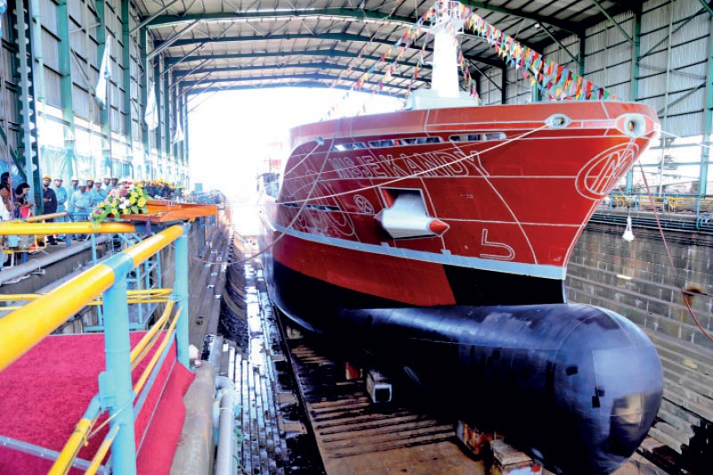 The ceremonial launching is the process of floating or transferring the vessel to water for the first time in her journey at sea. Symbolically this is done by breaking a ‘pot of milk’ according to Sri Lankan traditions over the ship’s bow area inviting good luck to the vessel, the crew and the owners and subsequently filling the dock with sea water enabling the vessel to float.