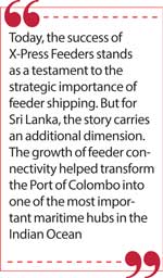Today, the success of X-Press Feeders stands as a testament to the strategic importance of feeder shipping. But for Sri Lanka, the story carries an additional dimension. The growth of feeder connectivity helped transform the Port of Colombo into one of the most important maritime hubs in the Indian Ocean.
