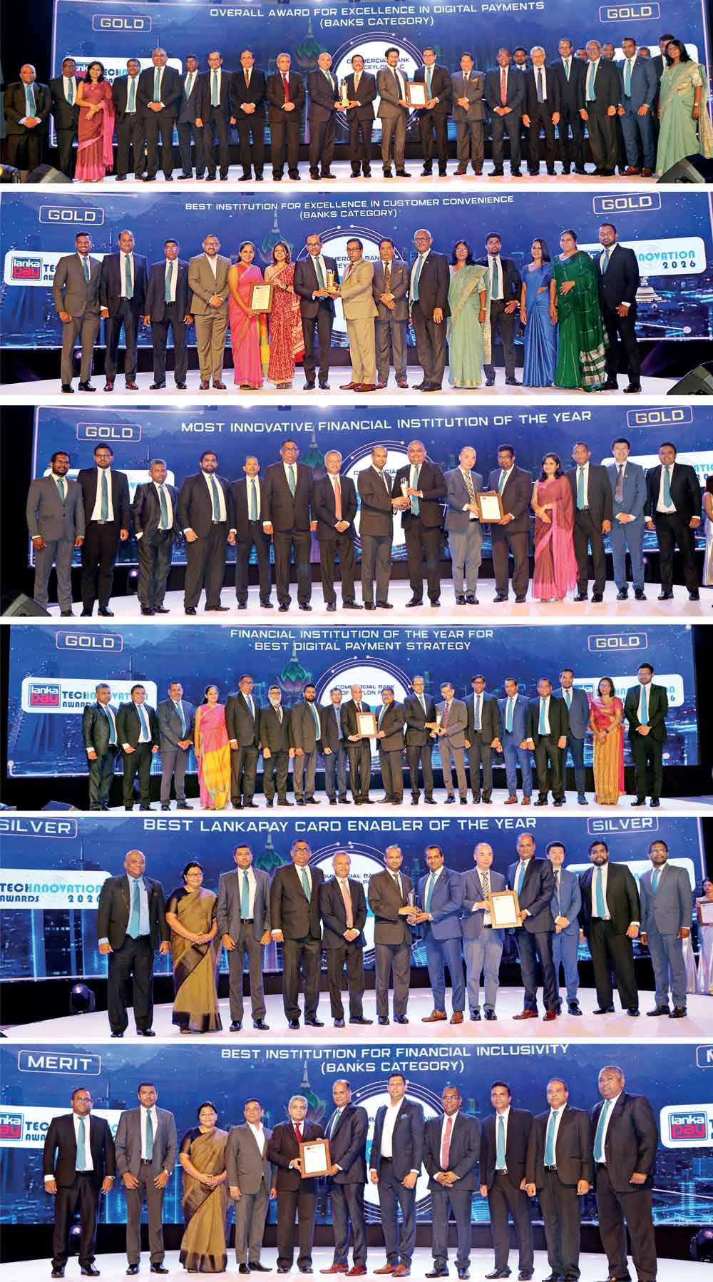 The Commercial Bank of Ceylon has reinforced its leadership in digital payments and financial technology innovation with a haul of six awards, comprising four Golds, a Silver and a Merit, at the prestigious LankaPay Technnovation