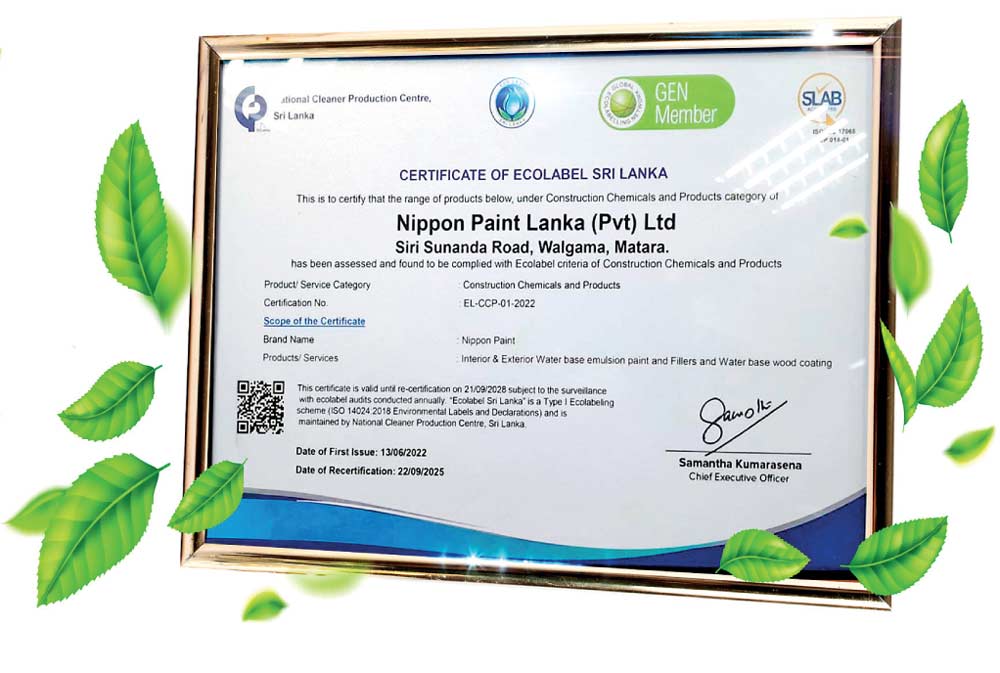 Nippon Paint Lanka was recertified with the Eco-Label Sri Lanka recognition this year, reaffirming its commitment to delivering products that are safe for the environment and humans. The company became the first paint manufacturer in Sri Lanka to obtain the Eco-Label certification back in 2022.