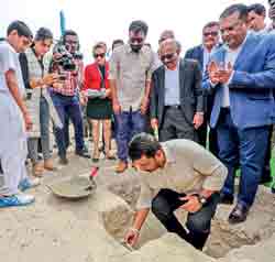 Sri Lanka Cricket (SLC) yesterday laid the foundation stone for the construction of the Jaffna International Cricket Stadium (JICS) in Mandaitivu, Jaffna.