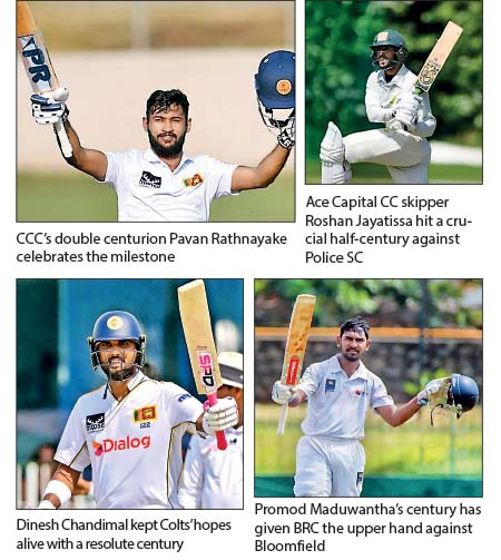 Moors SC’s chances of pulling off an outright win against CCC at the R. Premadasa International Cricket Stadium to keep their hopes alive to win the championship were drowned by Pavan Rathnayake’s brilliant double century, which saw his team pile up a massive total of 561.
