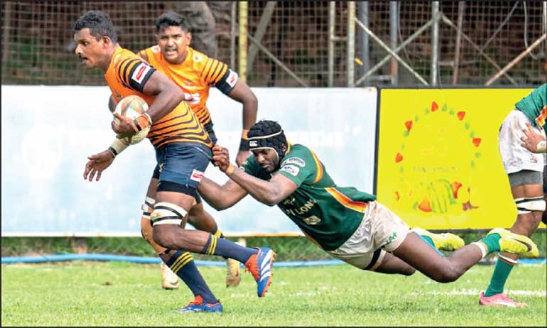 Sri Lions commanded much of the opening half with early tries from Yohan Dananjaya and towering national player and number 8 Nizran Nilar, while Dilshan Madushanka added the conversion. Army, slow to settle, clawed back through tries by Ijaz Ahamed and Nalaka Maduranga with Dinesh Victoecconverting one to even the scores at the break.