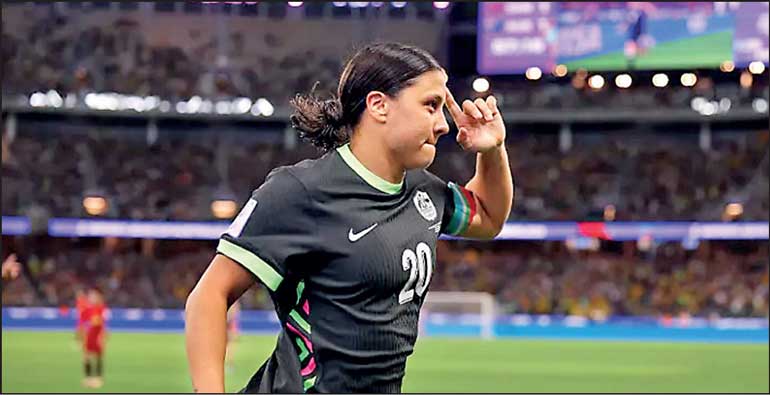 Sam Kerr of Australia celebrates scoring her team’s second goal during the AFC Women’s Asian Cup Australia 2026 semifinal yesterday