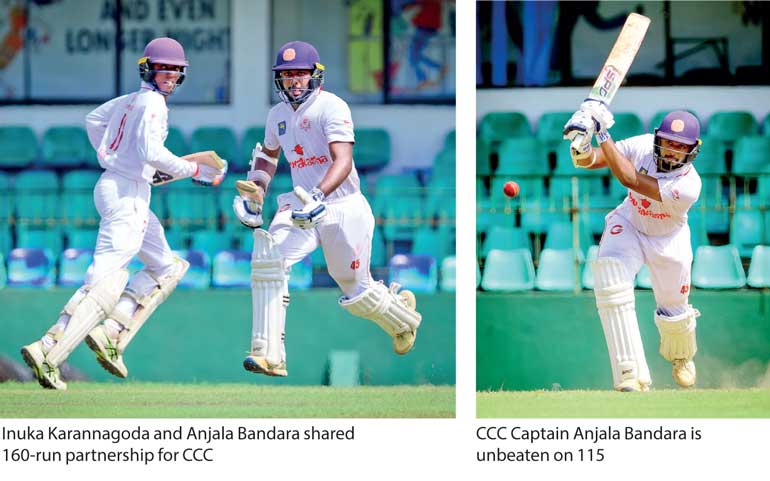 Anjala Bandara played a captain’s innings of 115* to rescue CCC from a precarious position of 117-5 to end the first day of the Under-23 inter-club 2-day final against Bloomfield on 278-6 at the SSC grounds yesterday.