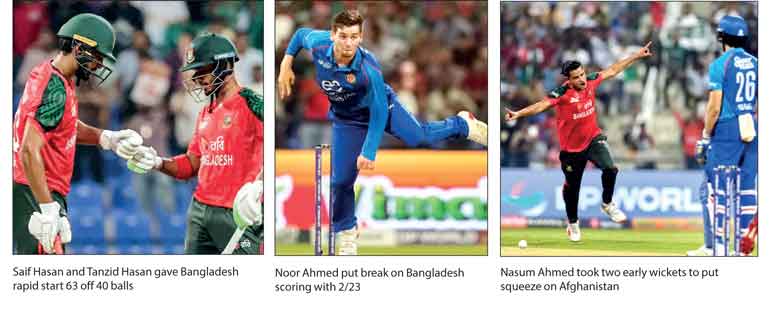 Scores: Bangladesh 154-5 (20) (Saif Hasan 30, Tanzid Hasan 52, Towhid Hridoy 26, Rashid Khan 2/26, Noor Ahmed 2/23)