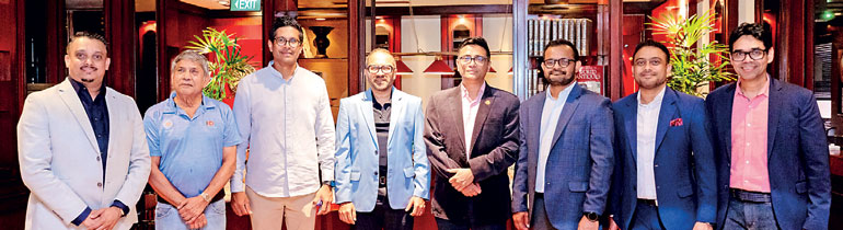 From left: Cinnamon Lakeside General Manager Dushyantha Tittawella, NOC SL General Manager Lal Wickrematunge, Walkers Tours CEO Nalaka Amaratunga, NOC SL Marketing and Sponsorship Committee Chairman Dilshan Mohamed, Secretary General Rifdy Fahmy, Cinnamon Hotels & Resorts CEO Hishan Singhawansa, Cinnamon Hotels Colombo Sector Director Sales and Marketing Imran Noordeen, and Cinnamon Hotels & Resorts CCO Radhey Tawar