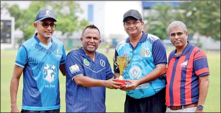 From left: Colombo Master Captain Sısila Indraratne, Winner of Joint Man of the Match against Boirvali Blues Muditha Hewawanitunga, and IFCA Roar 2025 Organising Committee members Swapnil Ghadge and Parag Shimpi