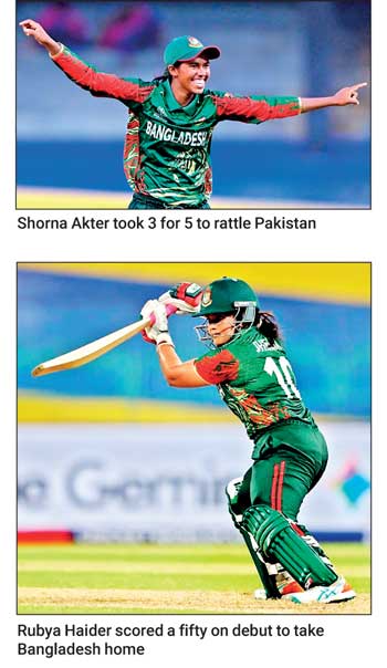Bangladesh got their ICC Women’s Cricket World Cup rolling as they thumped Pakistan by seven wickets at the R. Premadasa International Cricket Stadium yesterday, in the first match of the Colombo leg.