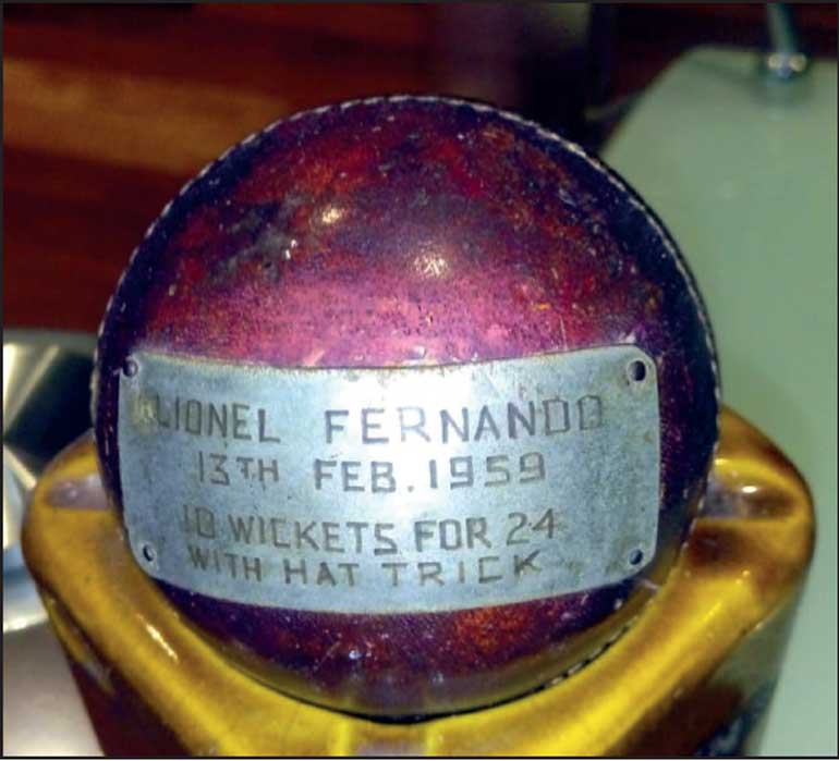 The ball with which Lionel took all 10 wickets in an innings including a hat-trick