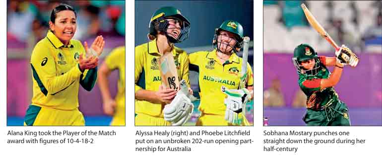 Alyssa Healy’s masterful century led Australia to a 10-wicket win over Bangladesh at Visakhapatnam yesterday, which sealed the reigning champions’ place in the knockout stages of the ICC Women’s Cricket World Cup.