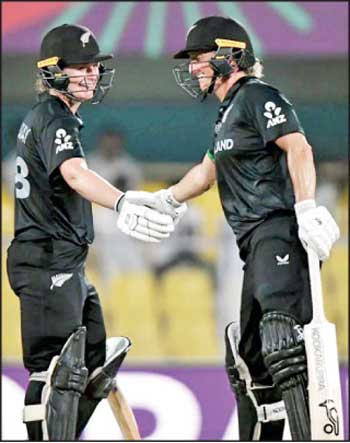 Brooke Halliday and Sophie Devine put on a century stand for New Zealand |