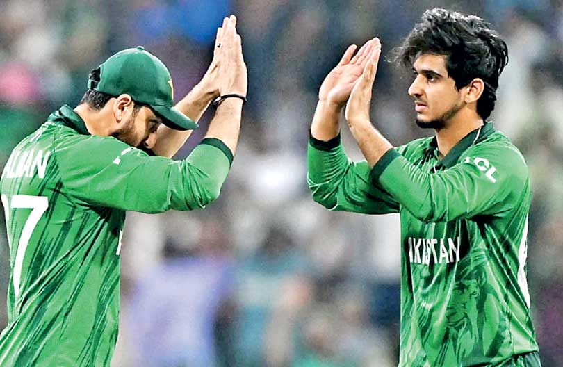 Saim Ayub (right) struck twice in two balls for Pakistan
