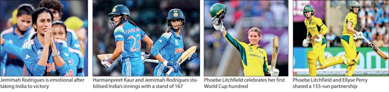 In the highest run chase in the history of Women’s ODIs, India beat defending champions Australia by five wickets with nine balls to spare in the second semi-final played at Navi Mumbai yesterday to book a place in Sunday’s final against South Africa.