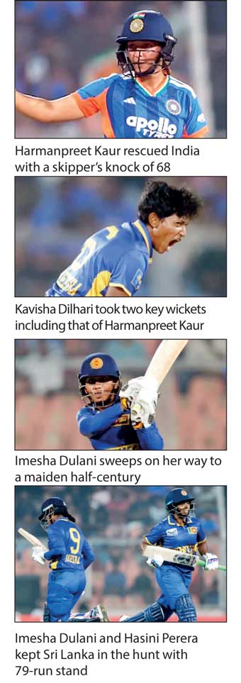 Scores: India Women 175-7 (20) (Harmanpreet Kaur 68, Amanjot Kaur 21, Arundhati Reddy 27*, Kavisha Dilhari 2/11, Rashmika Sewwandi 2/42, Chamari Athapaththu 2/21)