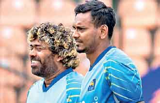 Dushmantha Chameera (right) with fast bowling consultant Coach Lasith Malinga. Chameera is being rested for today’s game