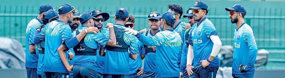 Sri Lankan players have a powwow ahead of practice in preparation for today’s contest against Zimbabwe