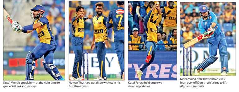 The turning point was when Mohammad Nabi was dropped at five by Wellalage at deep backward square leg off Chameera, and what a difference it made to Afghanistan’s final total. Nabi made Sri Lanka pay dearly for that lapse by hammering five sixes to bring up his 50 off just 20 balls to equal Azmatullah Omarzai’s record against Hong Kong China in the present tournament at the same venue. At that stage, Afghanistan were reeling at 106-6 in the 17th over, with Nuwan Thushara having ripped off their top order as he picked three wickets in the powerplay to give Sri Lanka the upper hand. The rest of the bowlers continued the good work and reduced Afghanistan to 79-6, but all that came crashing down in the last two overs bowled by Chameera and Wellalage.