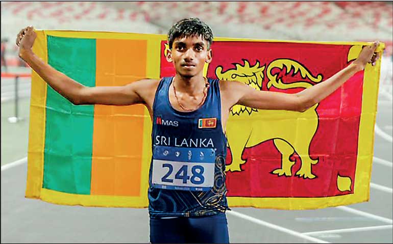 Lahiru Achintha won the Gold medal in the 1500 m Boys’ final, with a timing of 3 minutes 57.42 seconds.