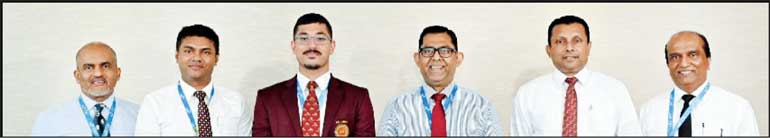 From left: HNB’s Assistant Vice President – Head of HC Strategy and Talent Development Roshantha Jayatunge, Head of Marketing Upul Adhikadi, champion swimmer Kyle Abeysinghe, Managing Director/Chief Executive Officer Damith Pallewaththa, Senior Vice President – Head of Retail Banking Kanchana Karunagama, and Vice President – Head of Deposits Viranga Gamage