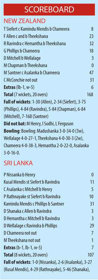 Pathetic is how Sri Lanka’s batting in the Super-Eights can be summed up as they succumbed to their second successive defeat by 61 runs to New Zealand at the R Premadasa Stadium yesterday and with it, kissing goodbye to their chance of making it to the semi-finals of the Men’s T20 World Cup.