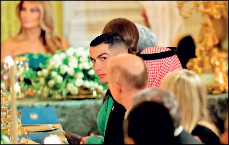 Ronaldo was seated near the front of the East Room, not far from where the US President and Saudi Crown Prince gave remarks to officials from both nations, along with major business leaders such as Apple CEO Tim Cook and Tesla Founder Elon Musk.