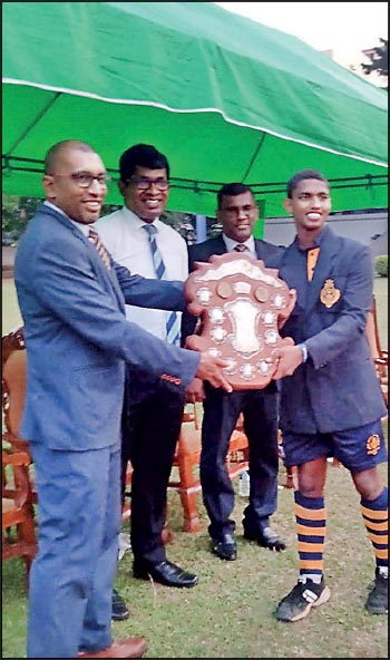 Royal skipper Yusuf Shihar receives trophy from former Sri Lanka national sticker and Royal old boy Sandun Channa Gajanayake