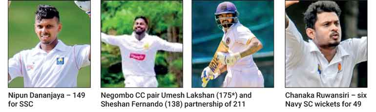 Pace setters SSC, driven by a resolute century (149 off 192 balls, 17 fours, 1 six) from Nipun Dananjaya finished strongly on 364-9 after being invited to bat first by Ragama CC at the SSC grounds. An opening stand of 54 between Avishka Fernando (45) and Shevon Daniel (58 off 80 balls, 7 fours, 1 six) laid the base for SSC’s innings. Veteran left-arm spinner Upul Indrasiri was the pick of the Ragama CC bowlers finishing with 5/121.