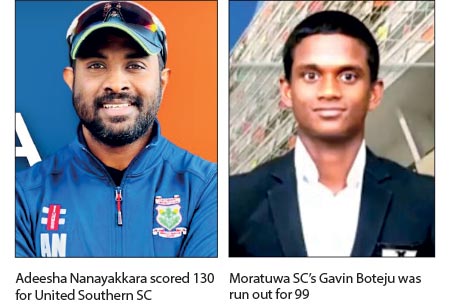 In a high-scoring game at the Samadhi Ground, Anuradhapura, Moratuwa SC took first innings points from Galle CC. Replying to Galle CC’s first innings of 271, Moratuwa SC, resuming at 288-4, reached 432-7 declared, with wicket-keeper Gavin Boteju missing out on a century by one run, getting run out (99 off 150 balls, 10 fours, 1 six), and Dinitha Siriwardena becoming the fourth batsman to score a fifty in the innings (71* off 111 balls, 9 fours, 1 six). Trailing by 161, Galle CC scored 233-4 in their second innings, mainly due to an opening stand of 125 by Ramesh Nimantha (93 off 130 balls, 11 fours) and Chamath Dilsara (63 off 82 balls, 6 fours, 2 sixes).
