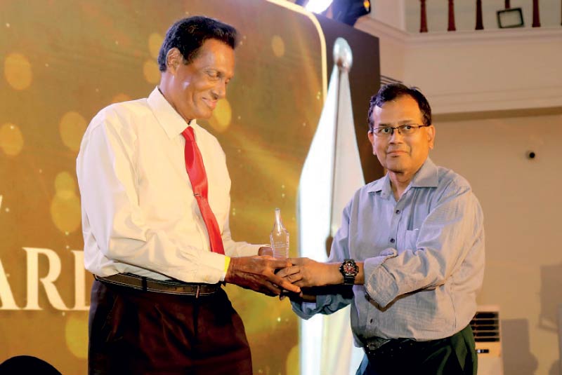 Sa’adi Thawfeeq (left) receives the Award from TEGOSL Member and Sunday Observer Editor Pramod de Silva