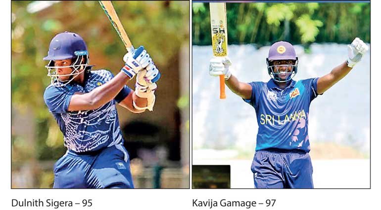 Dulnith Sigera and Kavija Gamage both missed out on centuries as Sri Lanka, batting first, scored 266-8 in their 50 overs. Sigera struck eight fours and three sixes in his 123-ball 95, while Gamage hit 10 fours and two sixes in scoring 97 off 109 balls before being run out. The two put on 170 for the third wicket, but once again Sri Lanka’s lower order suffered a collapse, losing five wickets for 25 runs, which is a cause of concern, especially when coming up against strong teams in the competition.