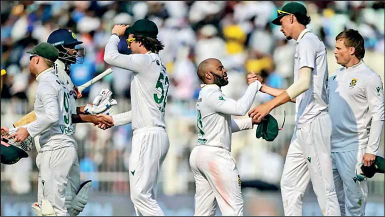 The Proteas, who won the World Test Championship at Lord’s in the summer, had trailed by 30 runs on first innings – but reversed that to pull off a 30-run victory as the hosts, needing only 124 to win, were bowled out for 93 in 35 overs.