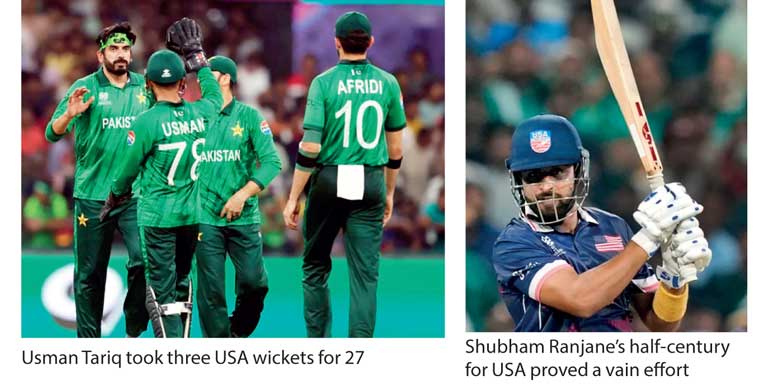 Spin heavy Pakistan unsettled USA for 158-8 to give their side a win by 32 runs - their second successive win in the ICC Men’s T20 World Cup match which was played under lights for the first time at the SSC grounds yesterday.