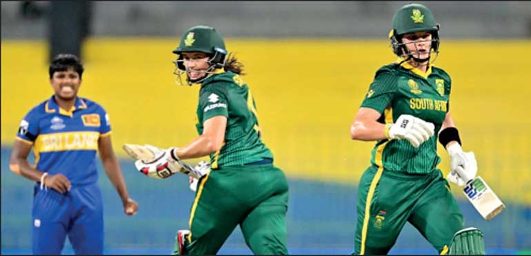 Sri Lanka’s chances of making a rare semi-final appearance in an ICC Women’s Cricket World Cup suffered a severe setback when they were beaten by 10 wickets (DLS method) by South Africa in a rain-reduced 20-over game played at the R Premadasa International Cricket Stadium yesterday.