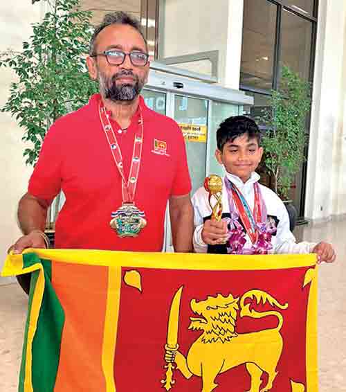 13-year-old Akindu Fernando with Head Coach Mothilal Jayathilake